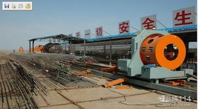 山東魯源全自動鋼筋籠滾焊機中鐵十九局施工現場,滾焊機調試完成
